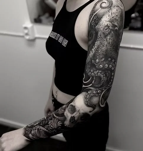 📏 Example: a forearm piece (around 25 × 17 cm) can usually be completed in one full-day session. For bigger projects, such as a sleeve, expect 4–5 full-day sessions.